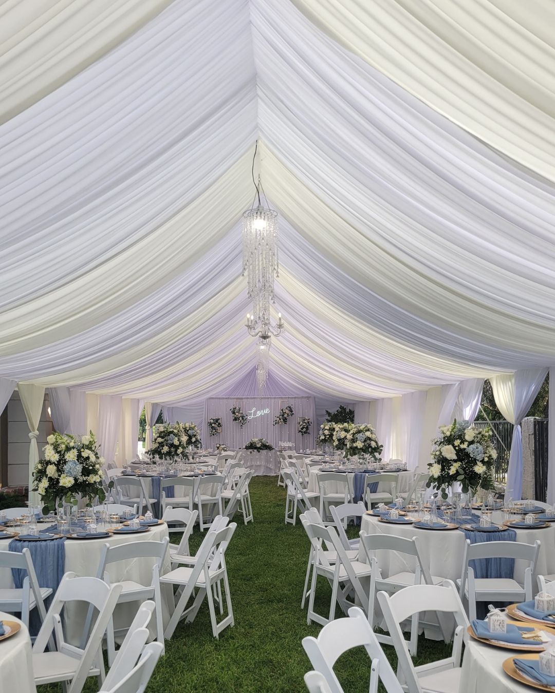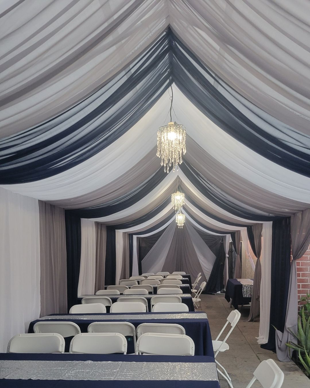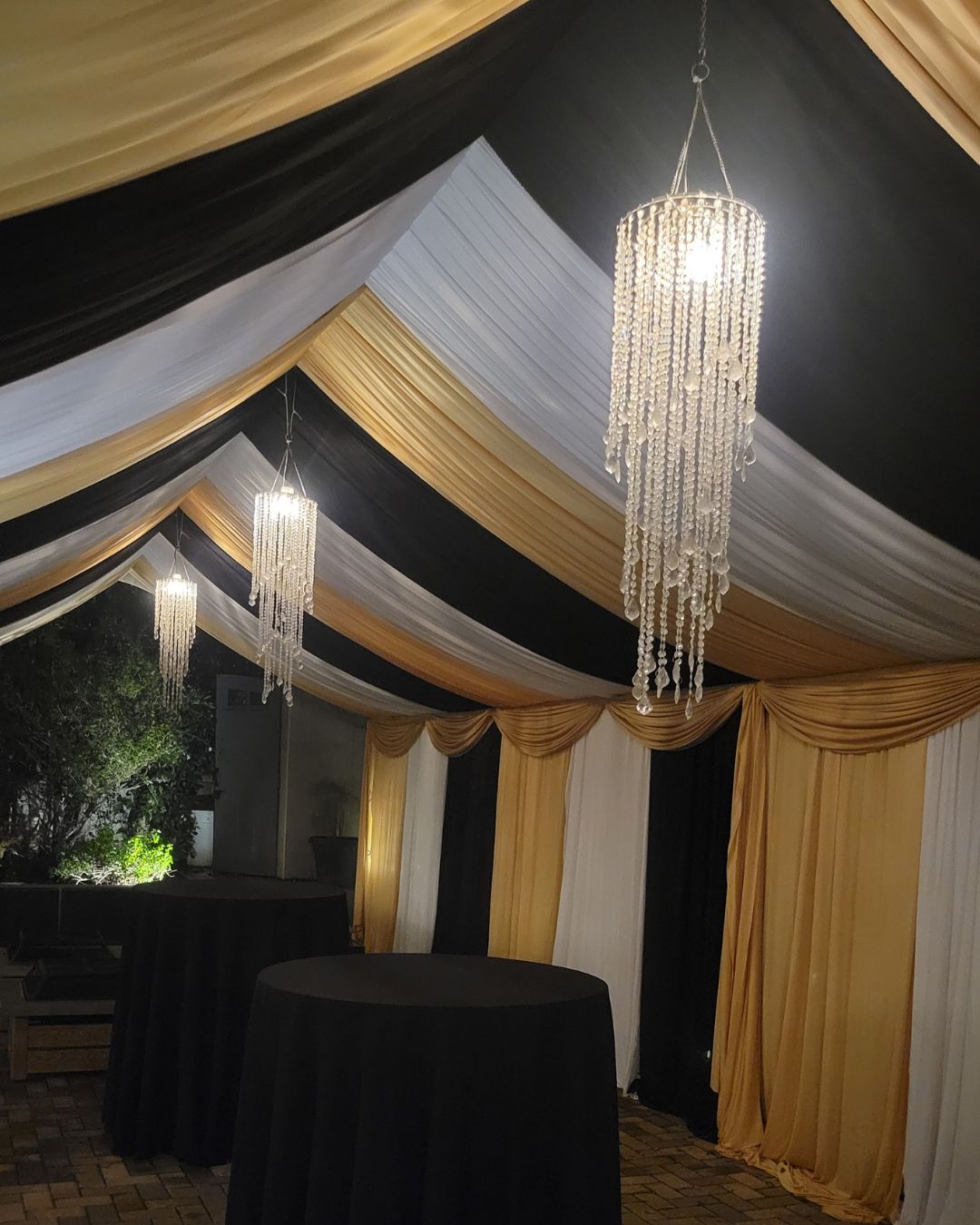 Presentamos nuestro servicio de Full Draped Canopy, donde nuestro objetivo es hacer que su evento luzca elegante.  Nuestros toldos brindan un refugio lujoso y elegante que transformará su patio o cualquier espacio al aire libre.