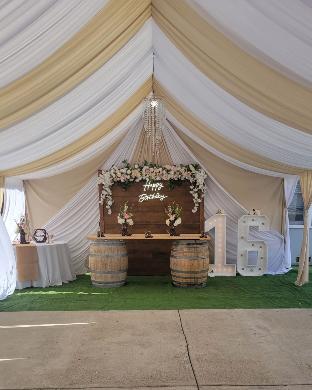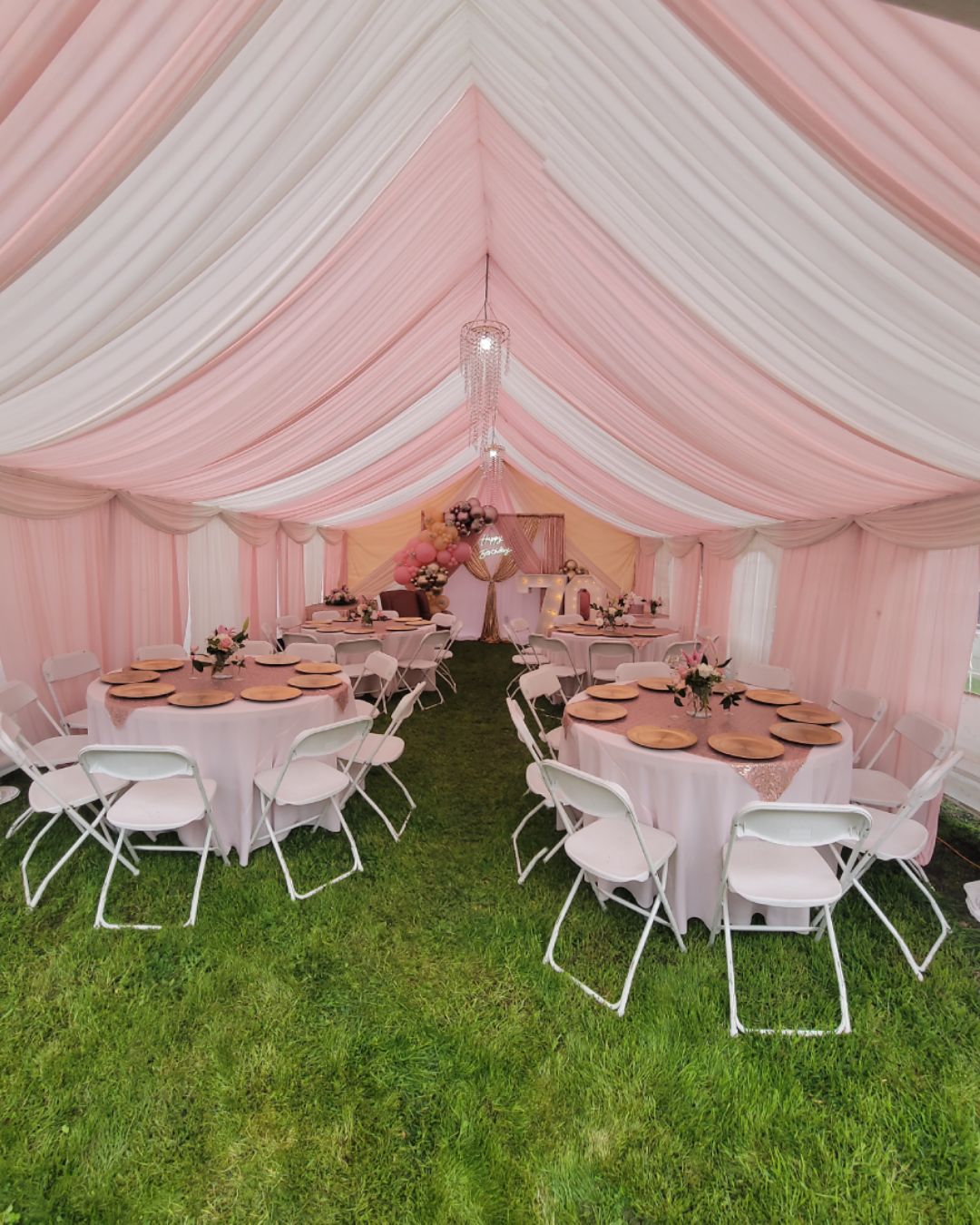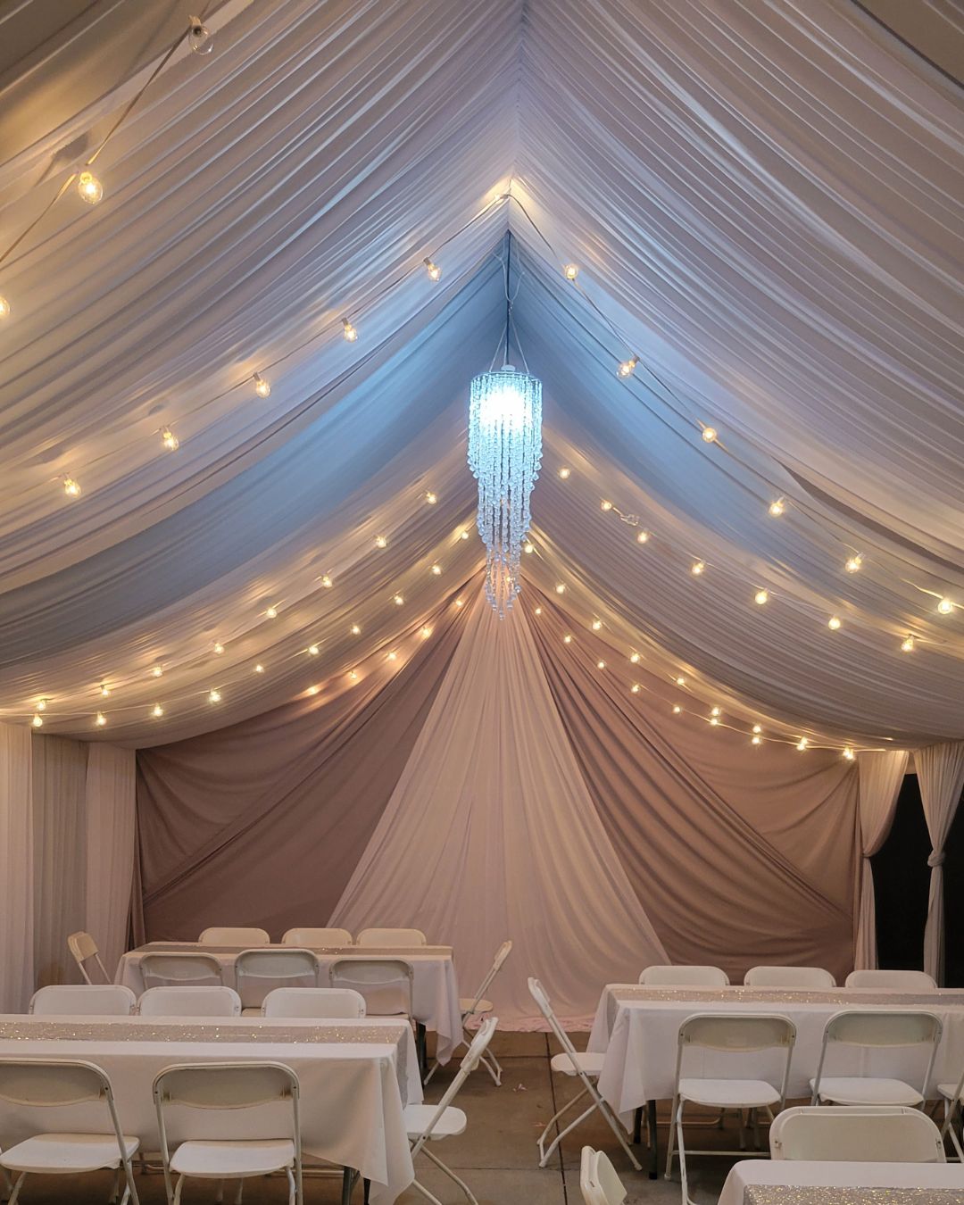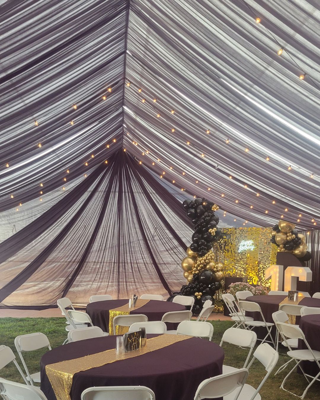 Presentamos nuestro servicio de Full Draped Canopy, donde nuestro objetivo es hacer que su evento luzca elegante.  Nuestros toldos brindan un refugio lujoso y elegante que transformará su patio o cualquier espacio al aire libre.